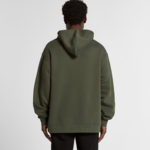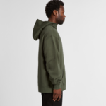 Pullover hood, drop shoulder, kangaroo pocket, lined hood, no drawcord, sleeve cuff ribbing